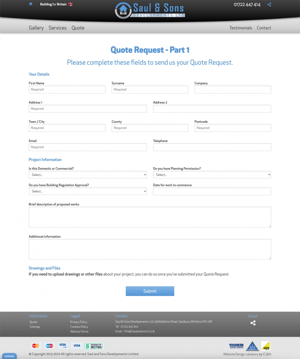 Having undergone a complete rebranding, this building contractor from Salisbury, Wiltshire, required a new business website. The aims were: